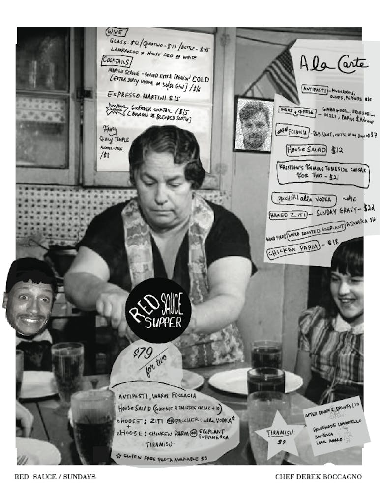 Paying homage to the borough of Brooklyn and its roots - and nodding to the idea that Sunday is meant to be spent with family and friends around the table - Williamsburg's Sunday In Brooklyn, celebrates its "Red Sauce Sundays" menu. Every Sunday night, Sunday In Brooklyn exclusively serves its family-style "Red Sauce Sundays" menu from 6:00PM to 10:00PM. Wine and martini specials also available.